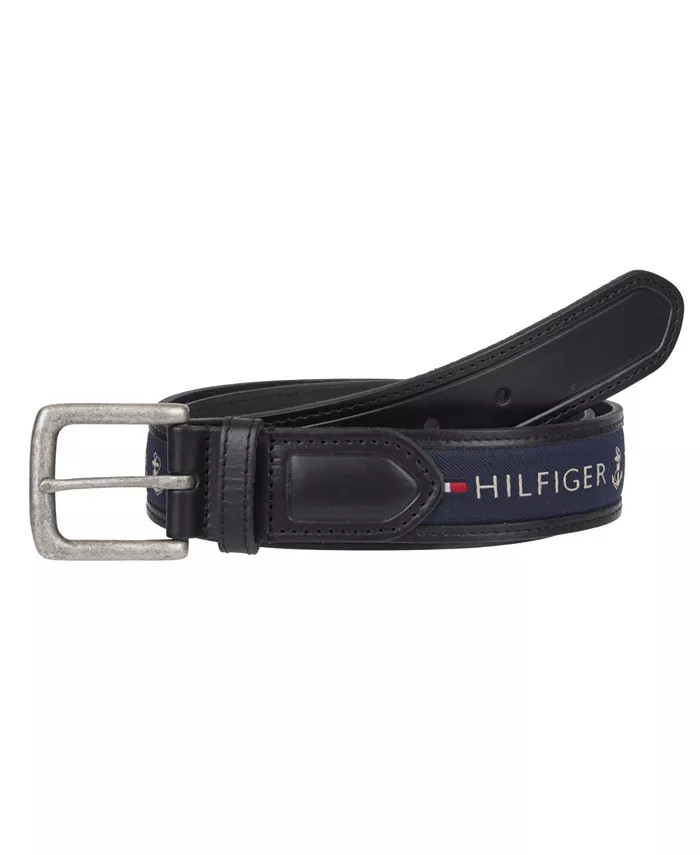 Tommy Hilfiger Men's Tri-Color Ribbon Inlay Leather Belt