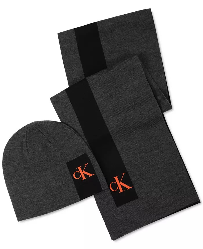 Calvin Klein Men's Silicone Ck Monogram Logo Scarf & Beanie Hat Set