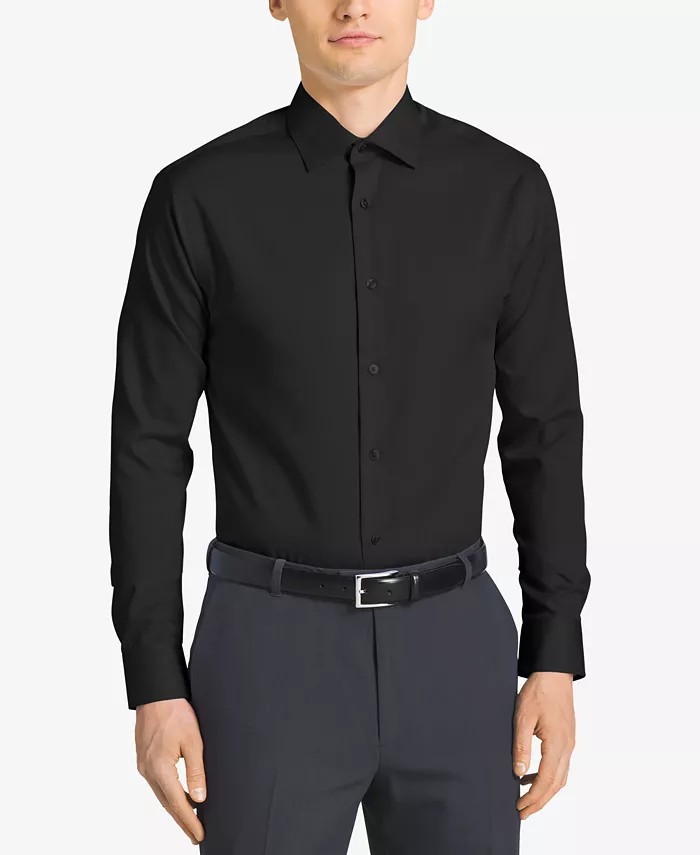 Calvin Klein Men's Steel Classic-Fit Non-Iron Performance Herringbone Spread Collar Dress Shirt