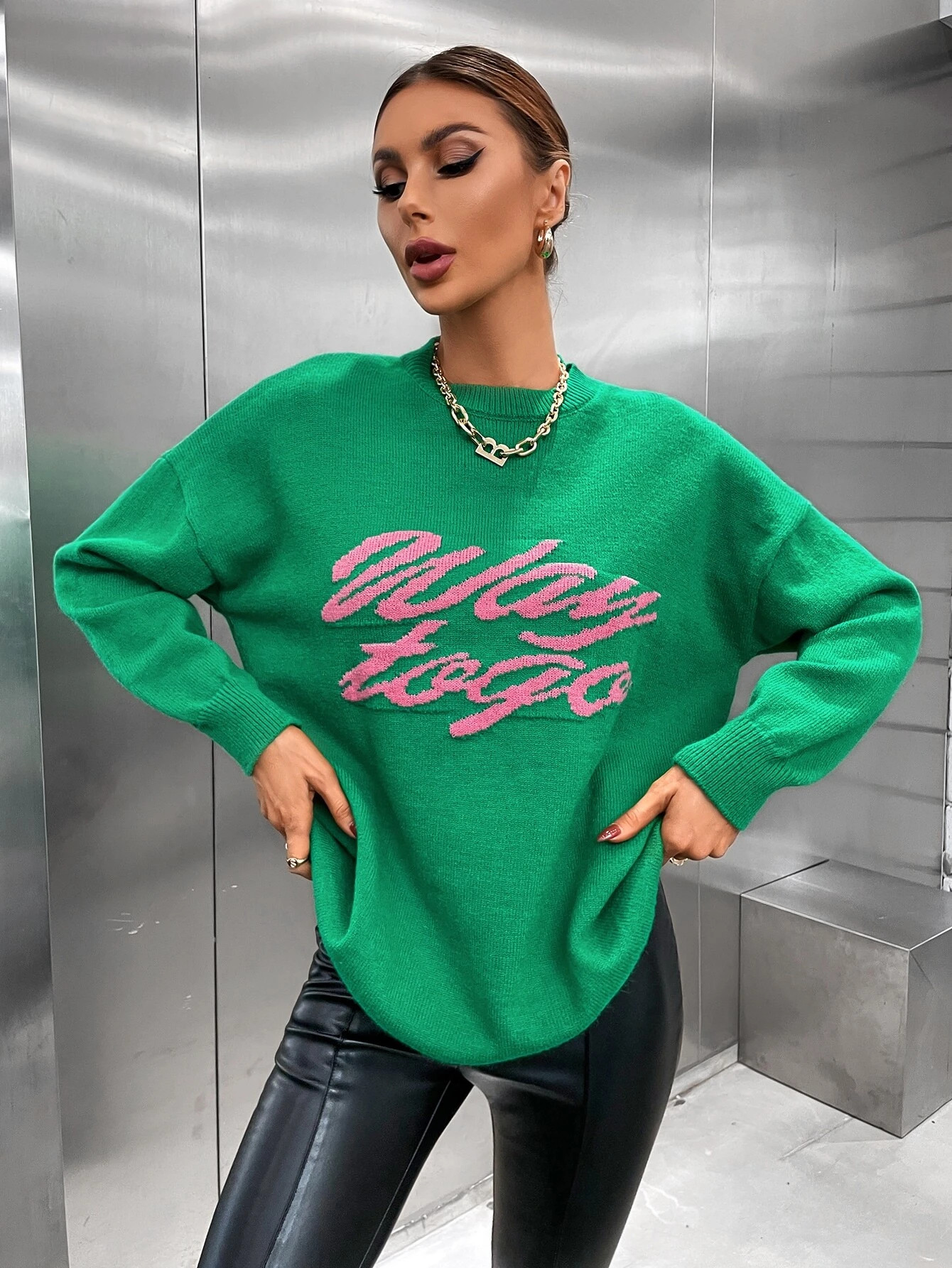 SEN Letter Pattern Drop Shoulder Oversized Sweater