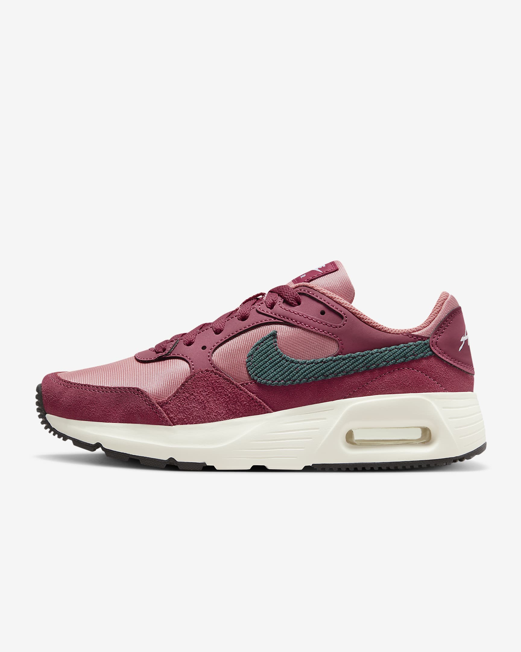 Sporting a heritage track look, the Air Max SC is the perfect finish to any outfit. The rich mixture of materials adds depth and durability, while the visible Nike Air cushioning makes it comfortable enough to wear all day. A corduroy Swoosh puts the cherry on top.